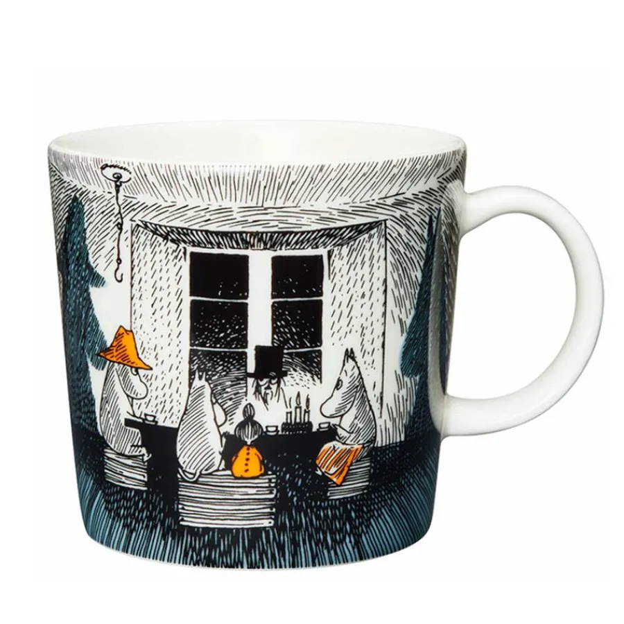 Mummikopp fra Arabia med lekent motiv fra Mummidalen. Motivet Tro mot opprinnelsen er basert på fortellingen «Mummipappa ved sjøen» der Mummipappa tar med seg familien og flytter inn i et fyrtårn. De populære samleobjektene i porselen fra Arabia er ildfaste og tåler ovn og mikrobølgeovn, men må stå på rist i ovnen og ikke bakeplate. Mummikoppene kan vaskes i oppvaskmaskin.