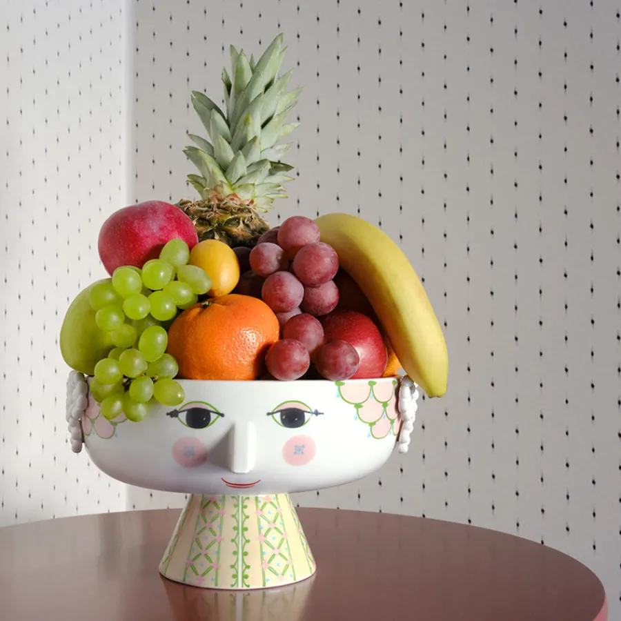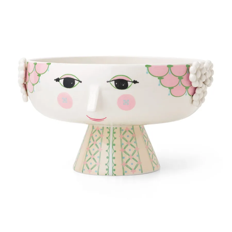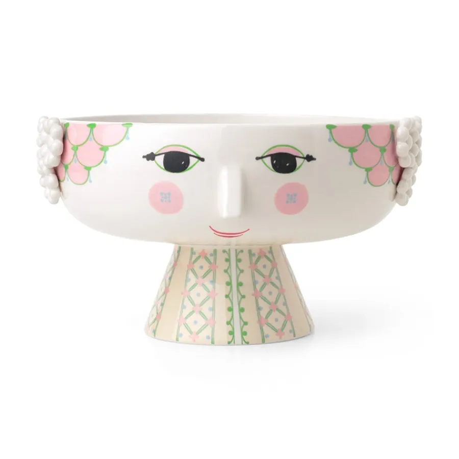 Skål på stett fra Bjørn Wiinblad og Eva i myk rosa keramikk. Skålen gir det lille ekstra til et hvert bord, og er flott fylt med julens godsaker, nøtter eller konfekt. Måler 14,5 cm i høyden og 24 cm i diameter.