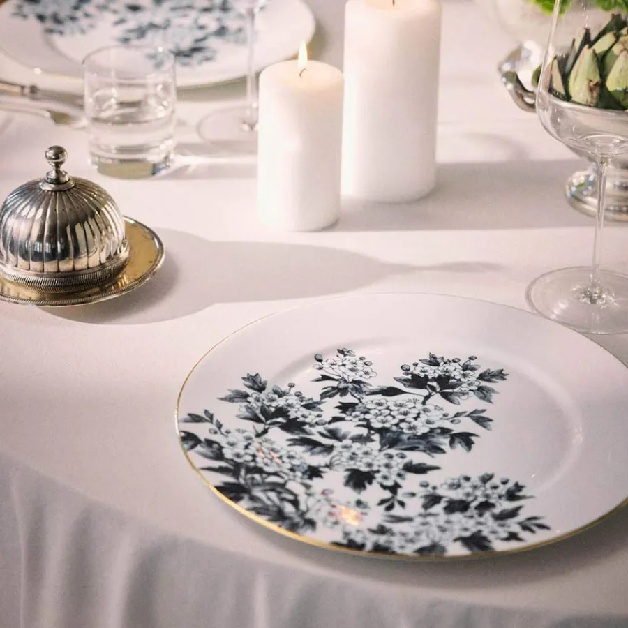 Med et moderne antrasittfarget design fra ByTimo er denne middagstallerkenen både elegant og tidløs. Antrasittfargen gir borddekkingen et sofistikert uttrykk, og blomsterdetaljene i kombinasjon med gulldekor gjør denne tallerkenen til et eksklusivt valg. Laget i holdbart benporselen som tåler daglig bruk.