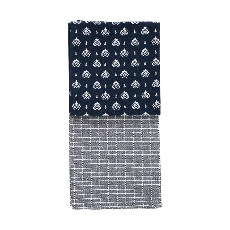 Disse marineblå kjøkkenhåndklærne i bomull kombinerer klassisk stil med god funksjonalitet. Leveres i 2-pk og er perfekte til tørking av både hender og oppvask. Et tidløst valg som passer inn i de fleste kjøkken.