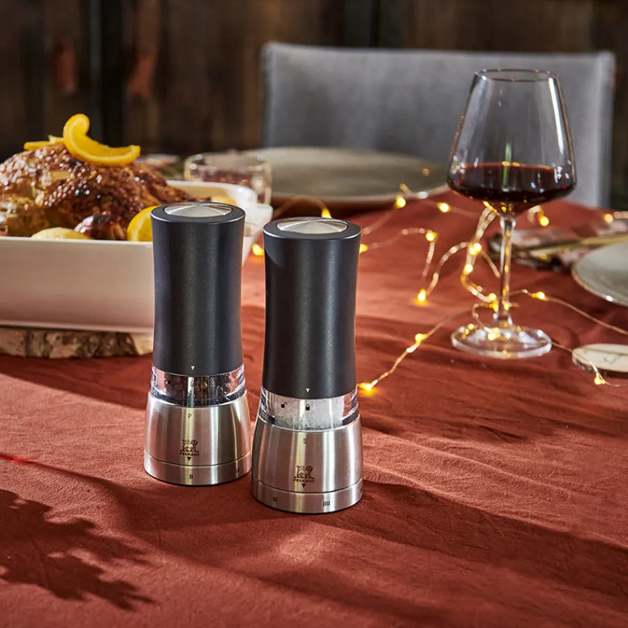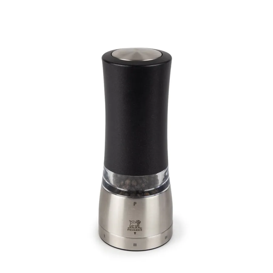 Denne elektriske pepperkvernen fra Peugeots Daman-serie måler 18 cm og gir enkel én-håndsbetjening med bare et knappetrykk. Kvernen er utstyrt med U’Select-systemet, som lar deg justere kverningsgraden med høy presisjon. Ideell for deg som ønsker kraftfri pepperkverning med nøyaktig resultat, også under matlaging.