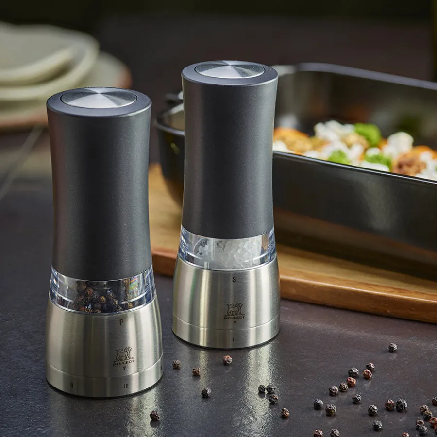 Den elektriske Daman-saltkvernen på 18 cm kombinerer moderne teknologi med Peugeots gjennomtestede keramiske kvernverk. Med justerbar U’Select-innstilling kan du enkelt velge mellom grovt og fint salt. Perfekt for kokker som ønsker presisjon og komfort i én og samme bevegelse.