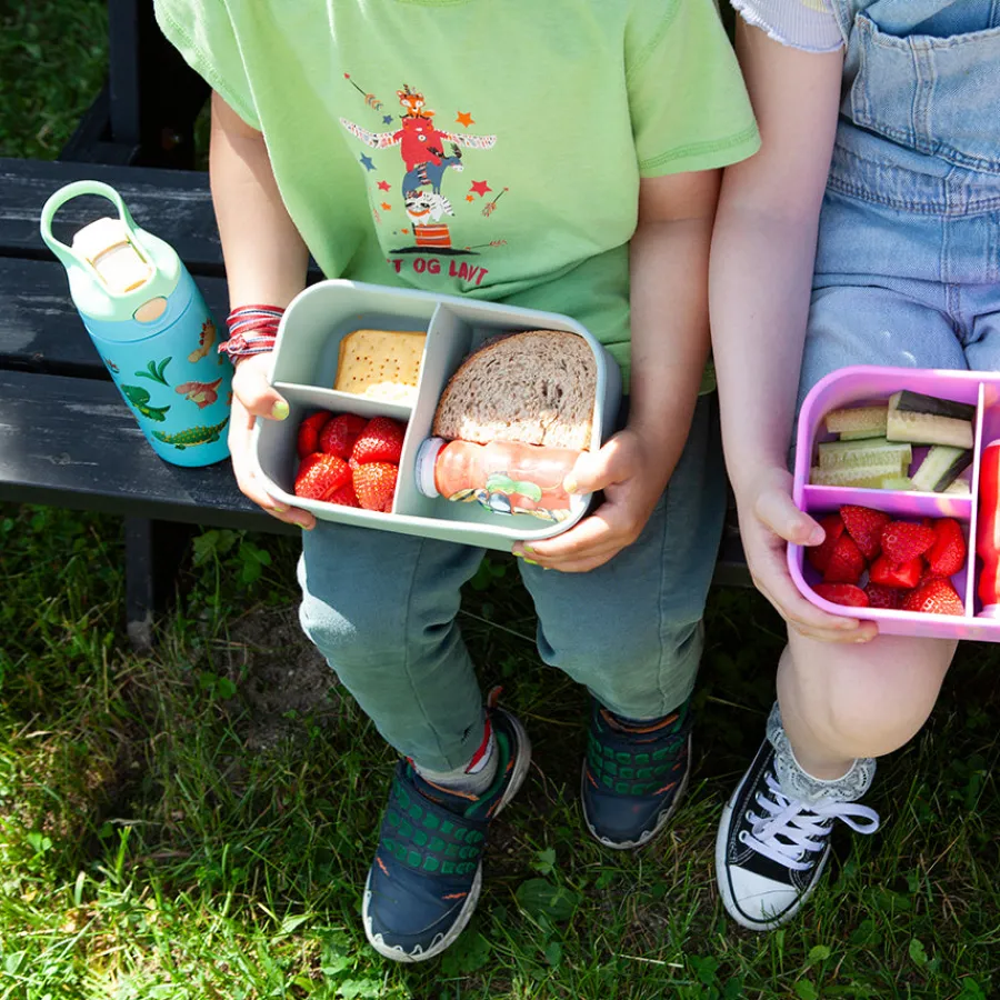 De tre separate rommene gjør det enkelt å holde ulike matvarer adskilt, enten du pakker med deg frukt, brødskiver, grønnsaker eller restemat. Takket være det slitesterke materialet tåler matboksen både mikrobølgeovn, stekeovn, fryser og oppvaskmaskin – ideell for en travel og bærekraftig livsstil.