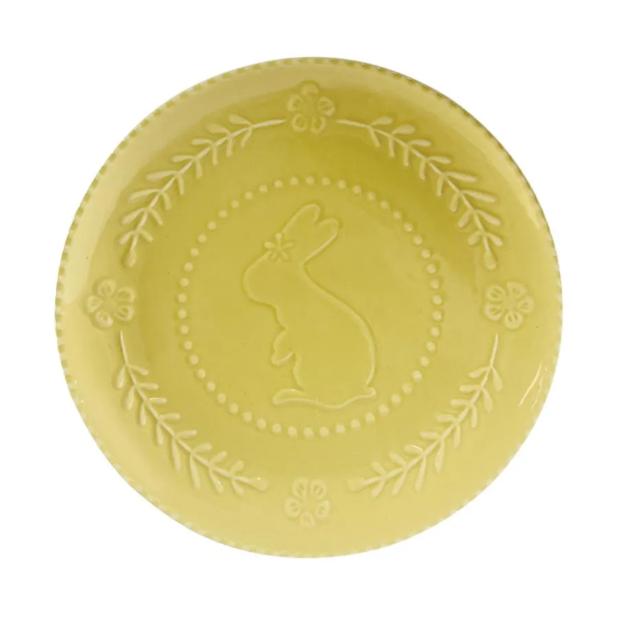 Skap en koselig påskefrokost med denne vakre tallerkenen fra Seasons Easter Collection. Med sitt sjarmerende haremotiv og delikate gulfarge bringer den vårstemning til bordet og passer perfekt til både hverdag og påskefeiring.Tallerkenen er 21 cm i diameter, ideell for frokost, lunsj eller servering av påskens søte fristelser. Laget av slitesterkt porselen, kombinerer den tidløs eleganse med praktisk bruk – perfekt til sesongens måltider.