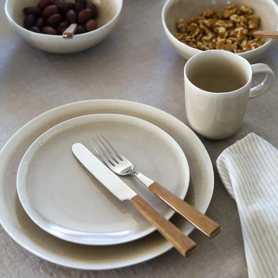 Asjett i fargen Latte fra Ellie – Porsgrund Porselænsfabriks nye serverserie med ujevne kanter og reaktive glasur, som gir en håndlaget følelse. Asjetten kombinerer myke og tidløse naturtoner med en delikat utforming, noe som gjør den perfekt for alle måltider fra frokost og lunsj til småkaker og dessert. Med sitt enkle og rene design, kan den enkelt kombineres med andre serviser og pyntegjenstander, og passer perfekt til både hverdagsbruk og spesielle anledninger.