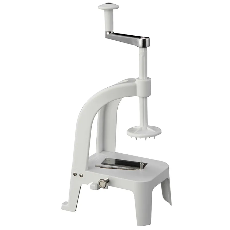 Denne vertikale grønnsaksstrimleren er ideell for å lage perfekte spiraler av råvarer opptil 120 mm i diameter og 60 mm i lengde. Med et slipbart blad og utskiftbare skjære- og strimelblader kan du enkelt lage spiraler i størrelsene 1 x 1 mm, 2 x 1 mm og 4 x 1 mm. Strimleren er enkel å demontere for rengjøring, og håndvask anbefales for å bevare bladets skarphet.