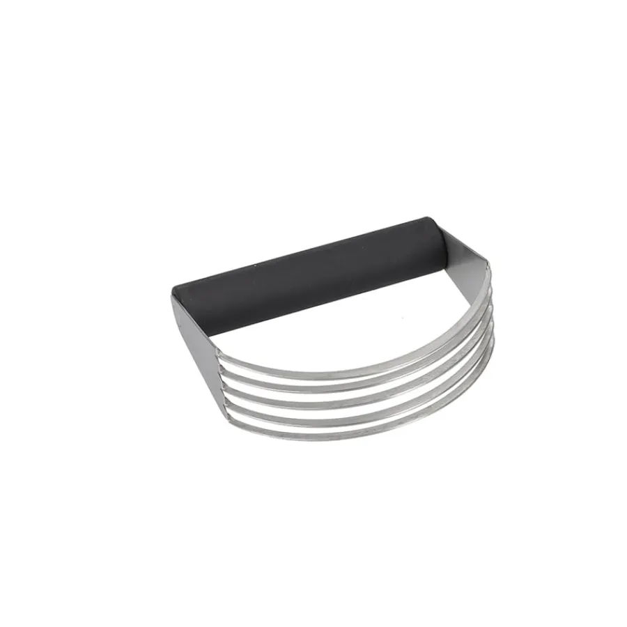 Deigblander i stål med fem buede kniver fra KitchenAid. Deigblanderen er utmerket til blanding av tørre ingredienser og fett, som mørdeig og scones. Det komfortable håndtaket sikrer et godt grep, og de buede knivene sørger for at alle ingredienser i bakebollen nås.