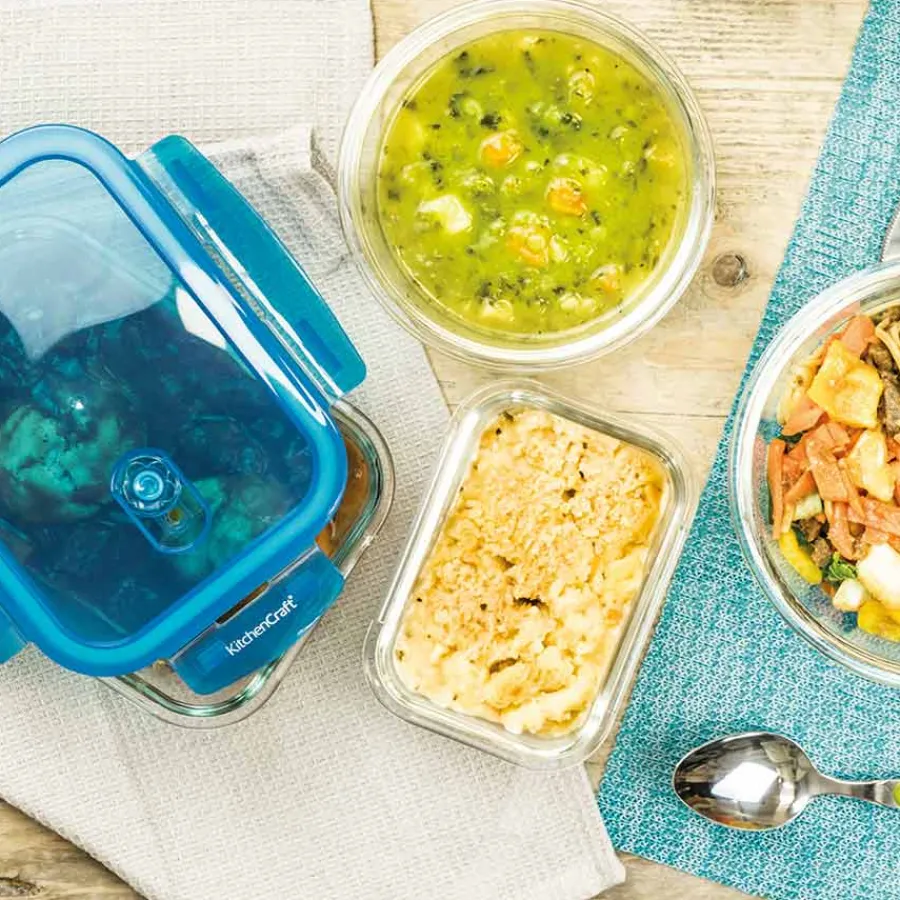 Oppbevaringsboks i glass med plastlokk fra Kitchencraft. Matboksen har en skyvbar lufteventil på plastlokket og er 100% lufttett. Egner seg godt til oppbevaring av blant annet lunsj og middagsrester. Oppbevaringsboksen er laget av et robust glass som gjør at den tåler både ovn, mikrobølgeovn, fryser, kjøleskap og oppvaskmaskin. Inneholder BPA-fri plast.