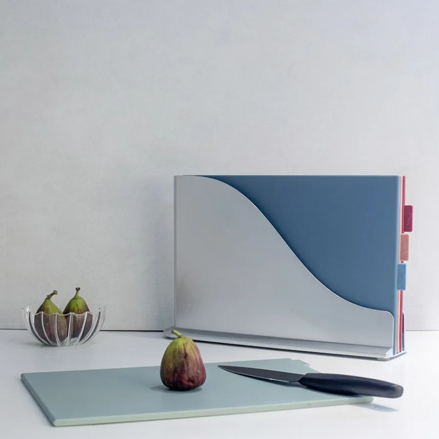 Alle skjærebrettene er godt egnet for oppvaskmaskin, holderen kan håndvaskes. Skjærefjølene kan vaskes i oppvaskmaskin og er varmebestandig opp til 90 grader C, Antibakteriell overflate, Unngå å plassere varme kasseroller eller stekepanner på fjølene, da skjærefjølene kan smelte.