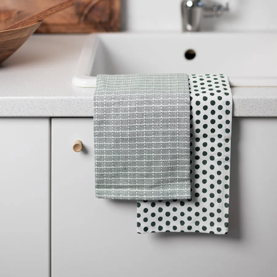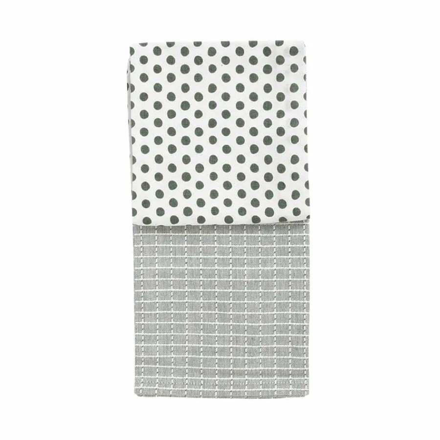 Kjøkkenhåndkle Grønn/Mønster Bomull 50X70cm 2pk<CHRISTIANIA 1739 Sale