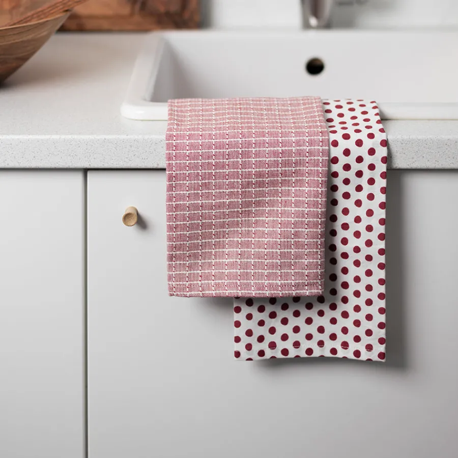 Kjøkkenhåndkle Rød/Mønster 50X70cm 2pk<CHRISTIANIA 1739 Sale