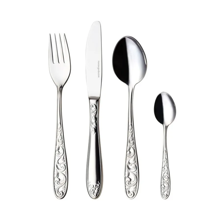 Kristin Bestikksett inneholder 24 deler, inkludert spisekniver, gafler, skjeer og teskjeer. Med sitt elegante design i rustfritt stål er dette settet perfekt til både hverdagsbruk og spesielle anledninger.