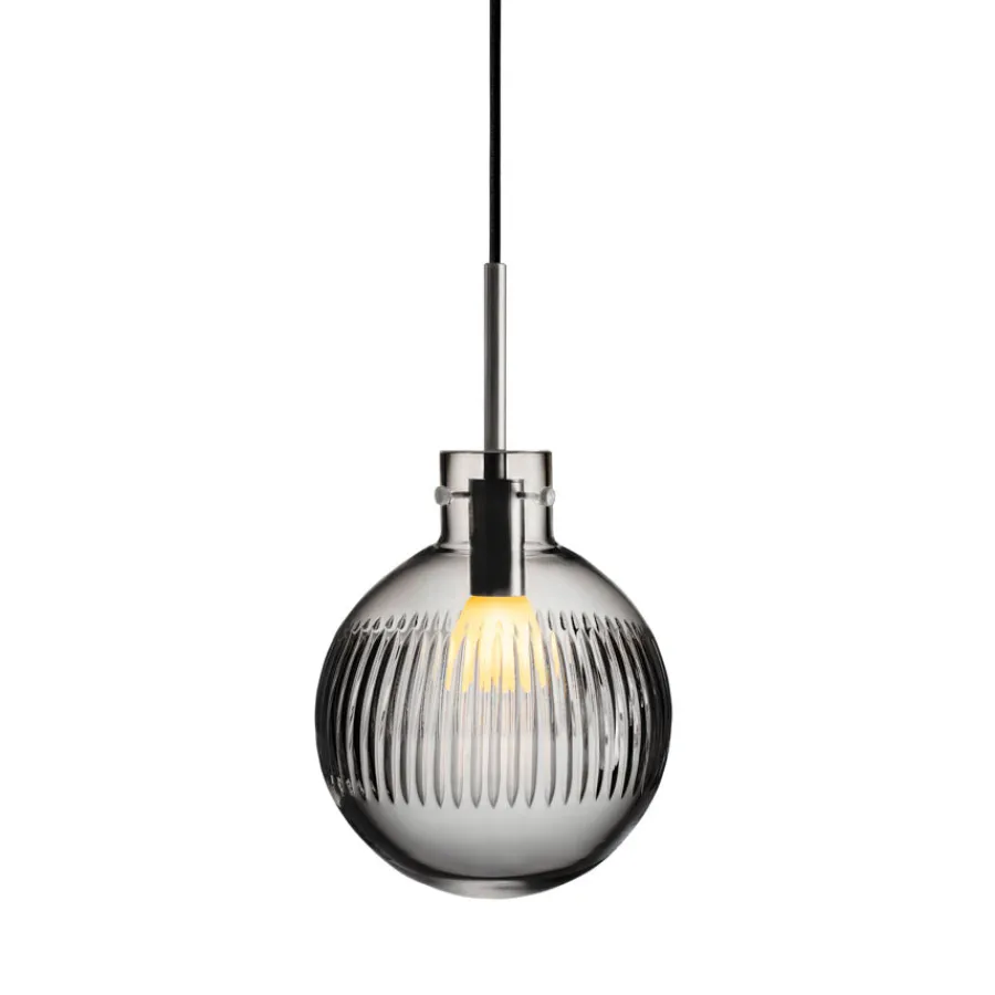 Alle våre krystallkuler munnblåses og håndslipes på Hadeland Glassverk, der flere enn syv håndverkere bidrar til å skape hver enkelt lampe. Den sofistikerte røkgrå fargen gir et eksklusivt preg og passer like godt i moderne minimalistiske rom som i klassiske interiører.