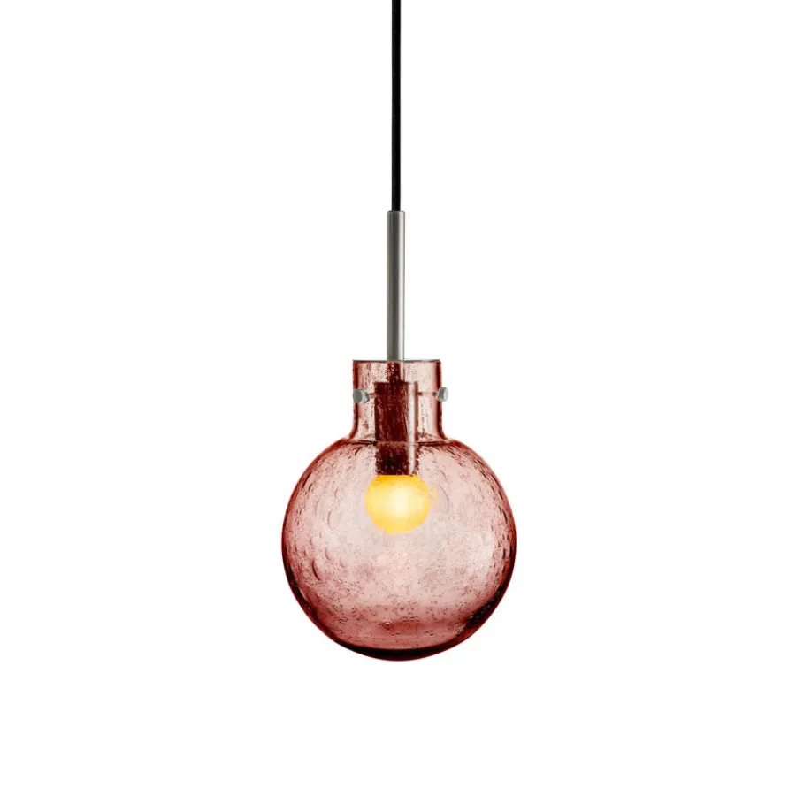 Alle krystallkuler fra Hadeland Glassverk er munnblåst og håndslipt av våre dyktige glassblåsere og slipere. Mer enn syv ulike håndverkere bidrar til hver lampe, noe som gir hvert eksemplar en helt personlig karakter. Den varme Morgenrød-fargen tilfører rommet en myk og elegant glød, som passer like godt i moderne hjem som i klassiske interiører. Lampen fungerer utmerket både alene og i kombinasjon med flere, for eksempel over spisebord, kjøkkenøy eller i stuen. Designet er signert Maud Gj. Bugge, og bærer preg av vår lange historie med kvalitet og presisjon.