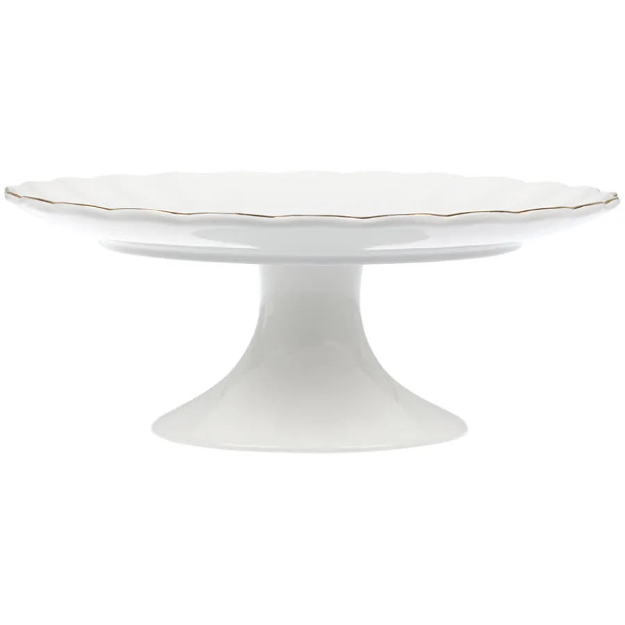 Gjør kakeserveringen ekstra spesiell med dette vakre kakefatet på stett fra Lilly-serviset. Med en diameter på 28 cm gir det rikelig med plass til alt fra imponerende lagkaker til små bakverk. Den hvite overflaten med en elegant gullkant skaper et luksuriøst uttrykk som passer perfekt til høytider, bryllup og festlige anledninger. Stetten gir kakefatet høyde, noe som bidrar til en stilfull presentasjon på dessertbordet. Perfekt for deg som ønsker et klassisk, men samtidig iøynefallende serveringsfat. Dette kakefatet er både funksjonelt og estetisk, og det løfter enhver kakeservering til et nytt nivå. Fatet tåler ikke mikroovn.