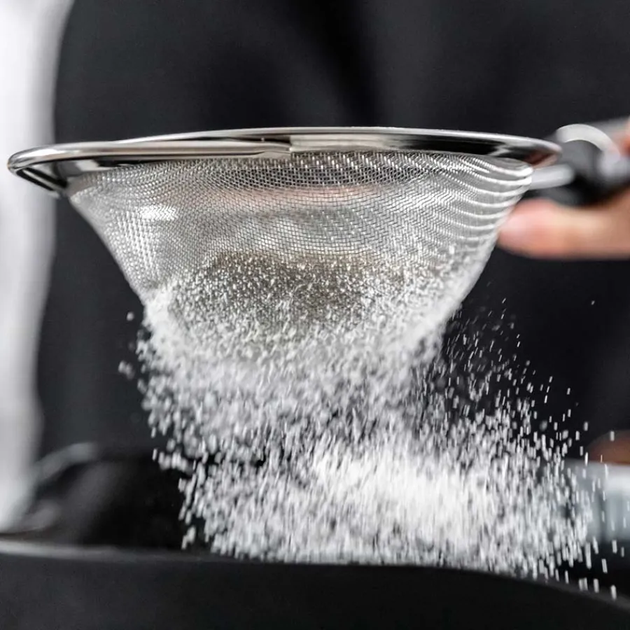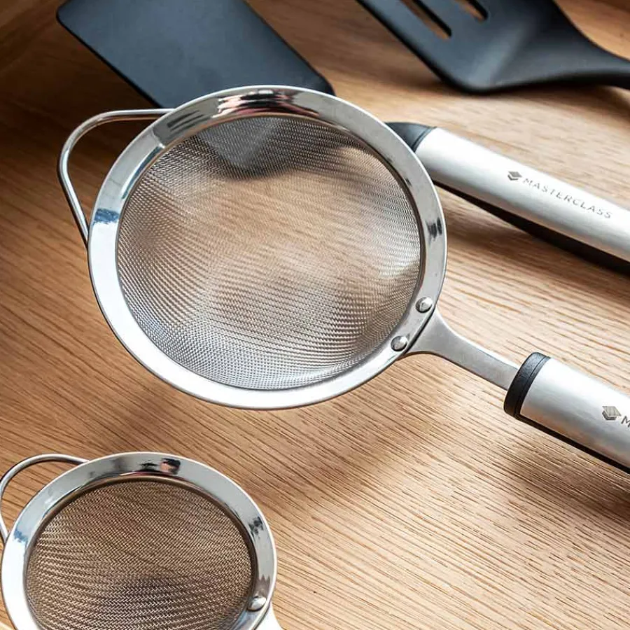 Sikt på 12 cm i rustfritt stål fra Masterclass. Sikten har et ergonomisk håndtak med et mykt grep som er designet for å passe komfortabelt i hånden og gi bedre grep. Sikten er laget av rustfritt stål og er motstandsdyktig mot lukt, flekker og smak.