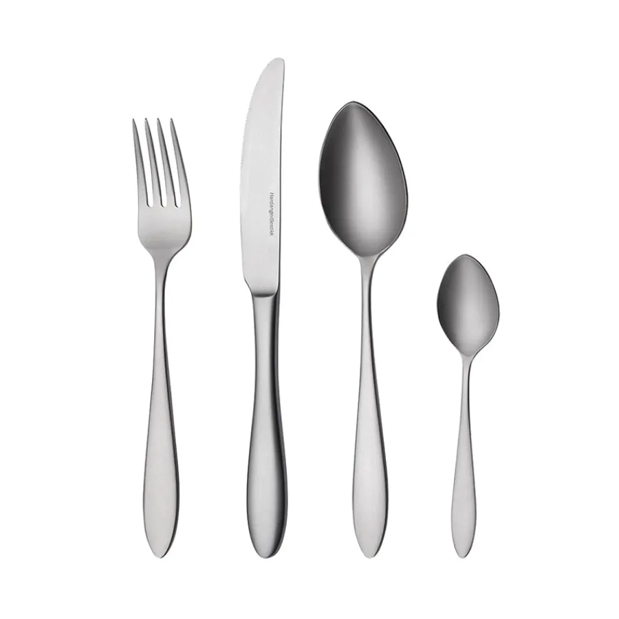 Bestikksett til 6 personer fra flotte Hardanger Bestikk og serien Maud, fremstilt i et matt sandblåst uttrykk. Bestikksettet kommer i 18/10 stål med en sandblåst overflate som skaper et stilfullt preg til spisebordet, utmerket til hverdag og fest. Kan rengjøres i oppvaskmaskin.