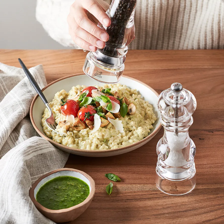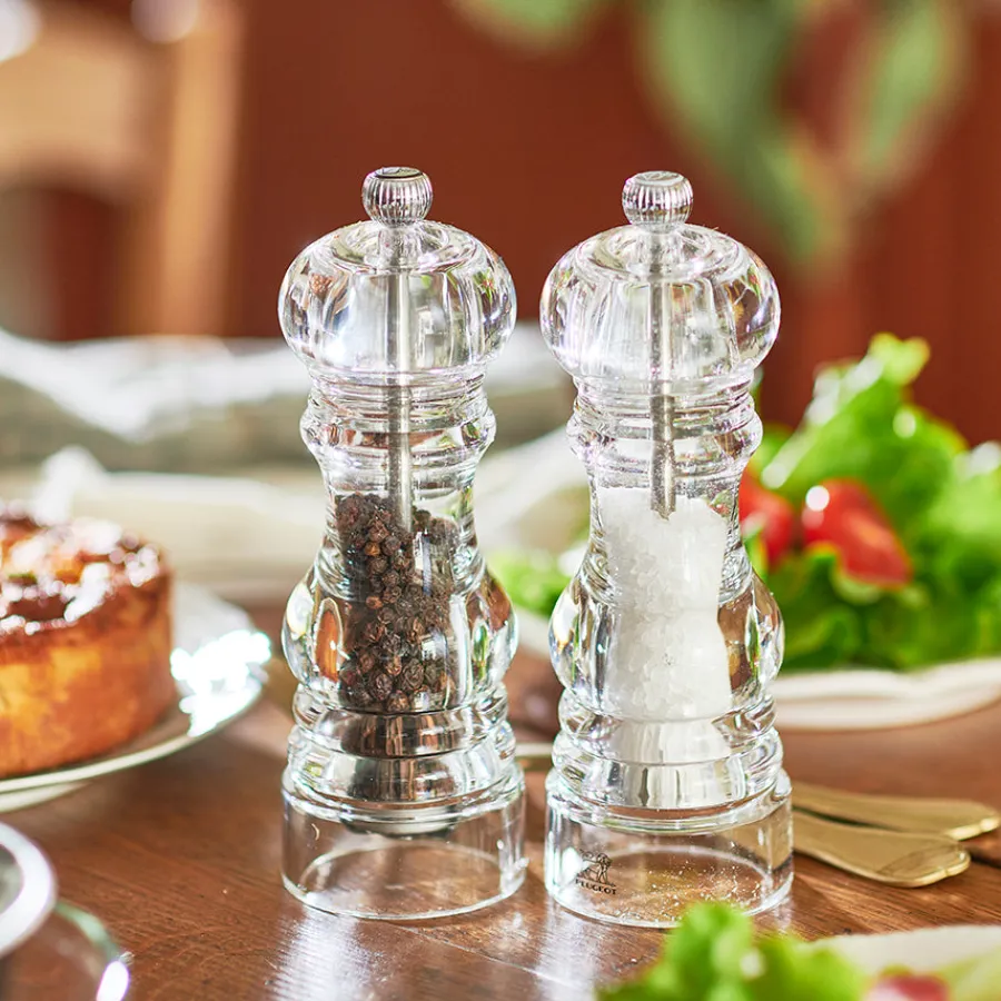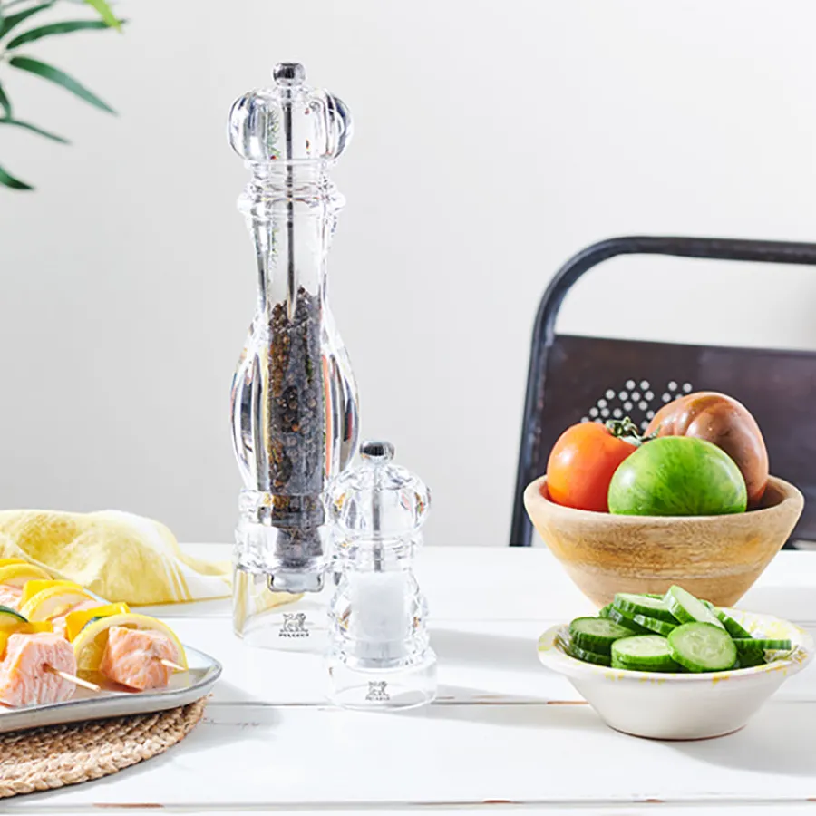 Med 18 cm høyde og krystallklar akryl er denne saltkvernen både funksjonell og dekorativ. Det keramiske kvernverket kverner salt uten å ruste, og gjennomsiktigheten gjør det enkelt å se hvor mye som er igjen. Et stilsikkert valg for et lyst og ryddig kjøkken.