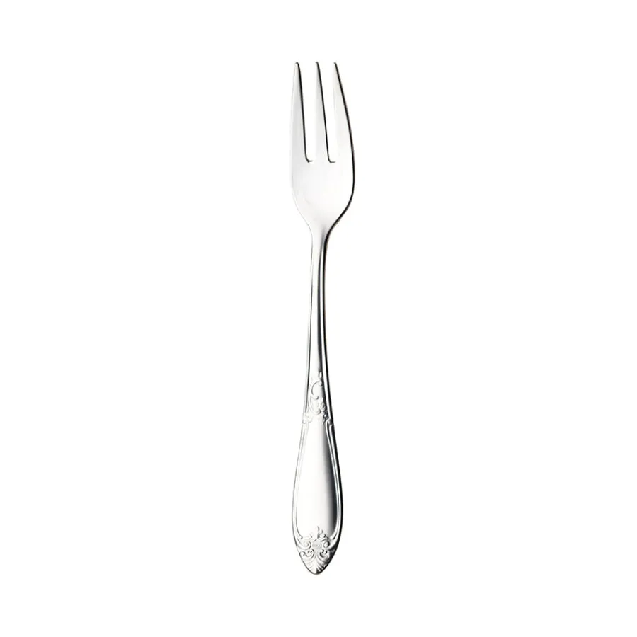 Nina kakegaffel fra Hardanger Bestikk er designet for delikate kaker og desserter. Den elegante formen og materialet i rustfritt stål gjør den til et praktisk og stilig valg for borddekking.