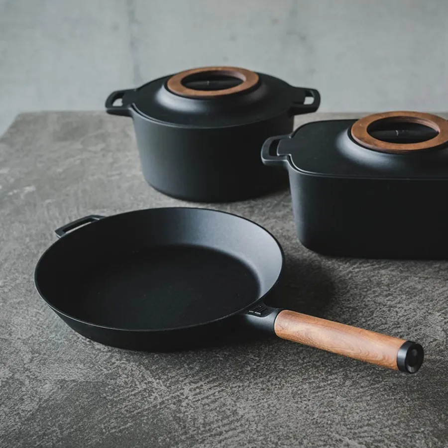 Støpejernspanne på 24 cm fra Fiskars Norden. En førsteklasses panne, designet med inspirasjon fra nordisk natur og tradisjoner. Den robuste støpejernsbasen holder ekstremt godt på varmen, noe som gjør den perfekt til bruning av kjøtt, fisk og grønnsaker. Det unike Thermium™-belegget gir suverene non-stick egenskaper, selv ved høye temperaturer, og gjør rengjøringen betydelig enklere.Tredetaljer i varmebehandlet finsk bjørk gir pannen et elegant utseende og kan fjernes før bruk i stekeovn. Kombinasjonen av premium materialer og innovativ teknologi sikrer langvarig holdbarhet og maksimal ytelse. Pannen er ideell for både tradisjonell og moderne matlaging, og tilfører et nordisk preg til ethvert kjøkken.