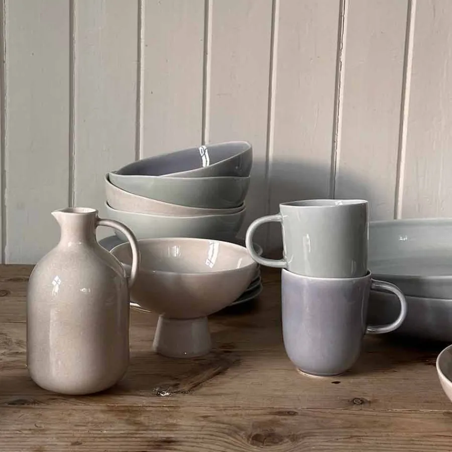 Start dagen med dette elegante kruset i Dusty Green fra Ellie-serien. Den sarte grønnfargen gir en følelse av friskhet og ro, mens den glatte glasuren skaper en behagelig drikkeopplevelse. Kruset har en solid hank som gir et godt grep, og den romslige størrelsen på 33 cl gjør det perfekt for kaffe, te eller andre varme drikker. Den lett ujevne formen gir et håndlaget preg, og hver kopp har unike variasjoner i glaseringen. Steintøyet er solid og tåler daglig bruk, inkludert oppvaskmaskin og mikrobølgeovn. Kombiner det med andre Dusty Green-elementer for en harmonisk borddekking, eller bland med fargene Dusty Blue, Rose og Latte for en spennende kontrast.