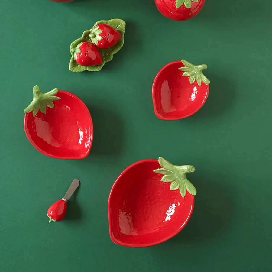 Skål i et vakkert jordbærdesign fra Porsgrunds Porselænsfabrik. Serien Jordbær er en flott samling av servisedeler som sprer friske farger og sommeridyll på bordet, perfekt til servering av friske desserter og snacks til de varme vår og sommerdagene. Jordbærskålen måler 26 cm x 19 cm.