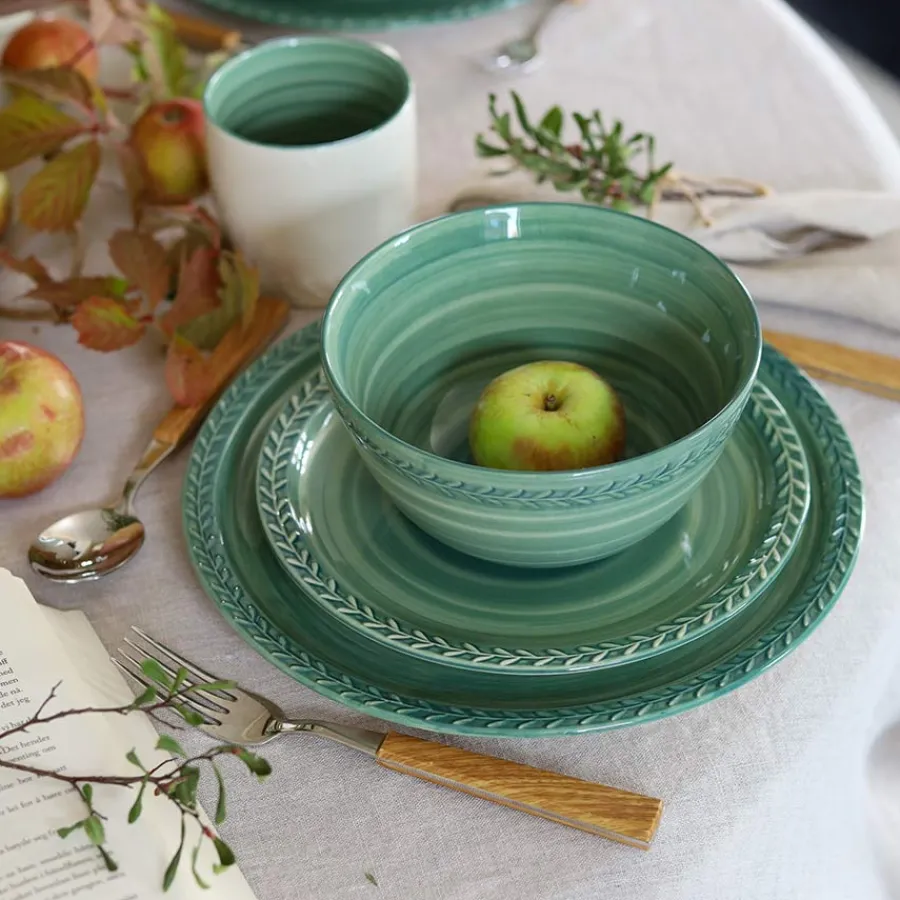 - Tidløs grønnfarge som skaper en rolig og elegant borddekking