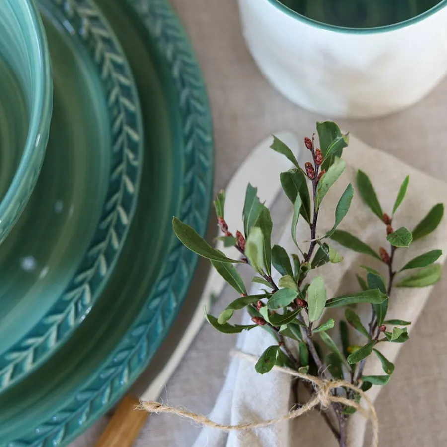 Pors Tallerken på 26 cm er en vakker middagstallerken som gir bordet et sofistikert og naturlig preg. Inspirert av porsplanten, med en elegant grønnfarge og delikat relieff som minner om porsens bladverk, forener denne tallerkenen håndverk og designtradisjoner fra Porsgrunn. Den romslige størrelsen gjør den ideell for alt fra middagsservering til større porsjoner, og den er enkel å kombinere med andre deler i serien for en helhetlig stil.