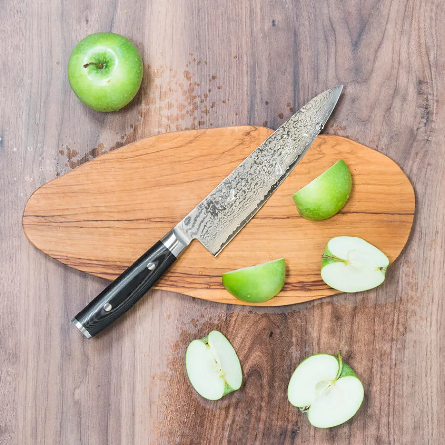 Kokkekniven fra Yaxells Ran-serie er et profesjonelt verktøy for deg som søker høy ytelse og tidløs design. Med sitt 20 cm lange blad og solide konstruksjon er dette en allsidig kniv som mestrer alt fra å kutte store kjøttstykker til å hakke grønnsaker og urter. Tyngden i bladet gir ekstra kraft, noe som gjør arbeidet enklere og mer presist.