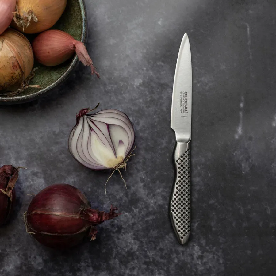Globals rotkniv på 7 cm er den minste og mest presise kniven på kjøkkenet, perfekt for skrelling av frukt og grønnsaker samt annet detaljarbeid. Den er laget av høykvalitets rustfritt stål, noe som sikrer både skarphet og holdbarhet. Enten du skreller i luften eller jobber med små ingredienser på skjærebrettet, gir denne kniven deg full kontroll og presisjon. Med sitt ergonomiske design er den lett å håndtere og ideell for oppgaver som krever nøyaktighet.
