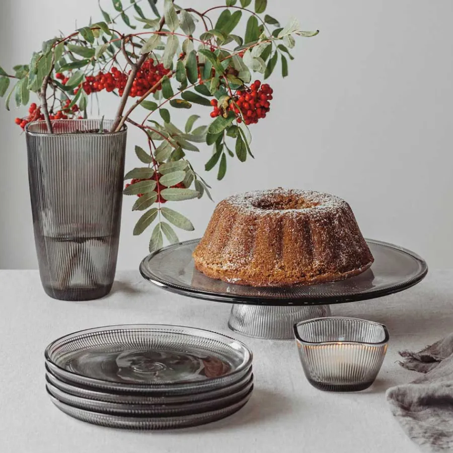Asjetter på 20,5 cm med dekorative riller i gråfarget glass fra den flotte serien Siri fra Hadeland Glassverk. Asjettene leveres 4 stk i pakken og er perfekt til frokost eller kakeselskap. Siri er en relansering fra Hadeland Glassverk basert på Willy Johanssons design fra 1954.