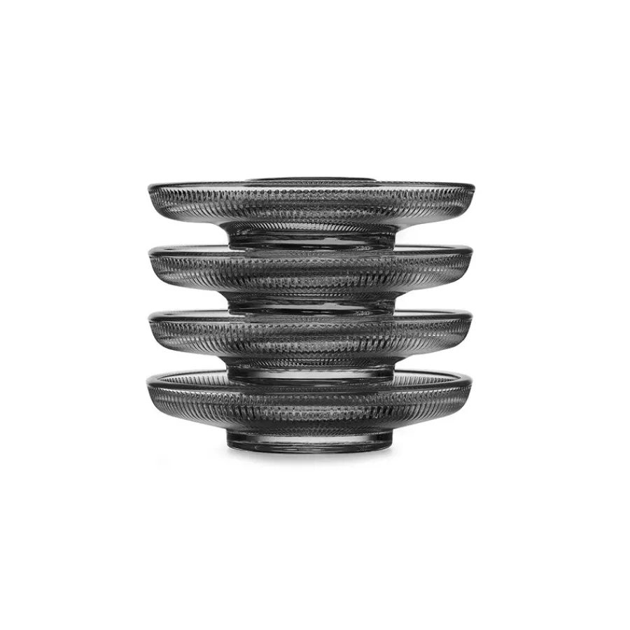 Eggeglass fra Hadeland Glassverk sin serie Siri i røkgrå glass. Den vakre serien med gjennomgående riller i glasset ble lansert allerede i 1954, men har blitt relansert i senere tid. Serien består av flere flotte produkter slik at du enkelt får en rød tråd. Eggeglassene kommer i en pakke med 4 stk.