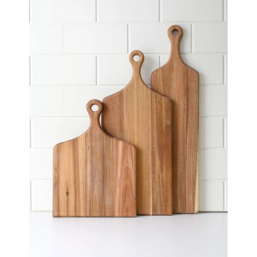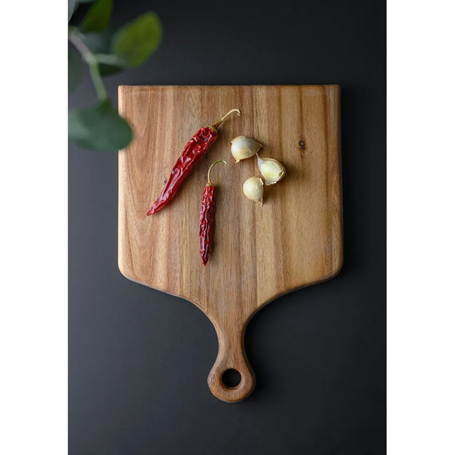 Skjærefjøl i akasiatre med flott spill i treverket. En trefjøl egner seg godt til å skjære og servere for eksempel brød på, men den kan også stå oppstilt som et dekorelement på kjøkkenbenken eller med pynt på spisebordet. Skjærefjølen i akasiatre finnes i fem forskjellige størrelser. Skjærefjølen bør vaskes med mild såpe og varmt vann på begge sider for å unngå at treverket blir bøyd.