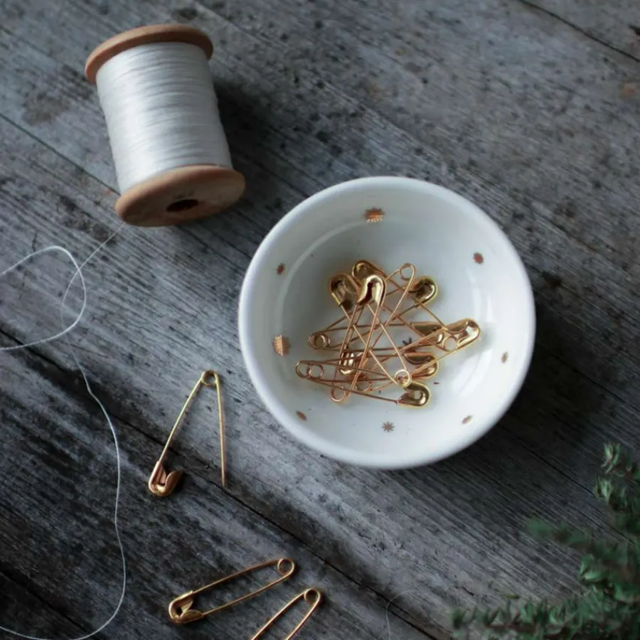 Liten bolle på 6 cm fra Wik & Walsøe og den eventyrlige serien Stjernedryss. Den flotte serien har fått sine dekorelementer fra den enkle og rene stjernehimmelen som skinner på en stille vinternatt. Skålen kan brukes som vakker dekor, til oppbevaring av smykker eller som en liten serveringsskål til konfekt.