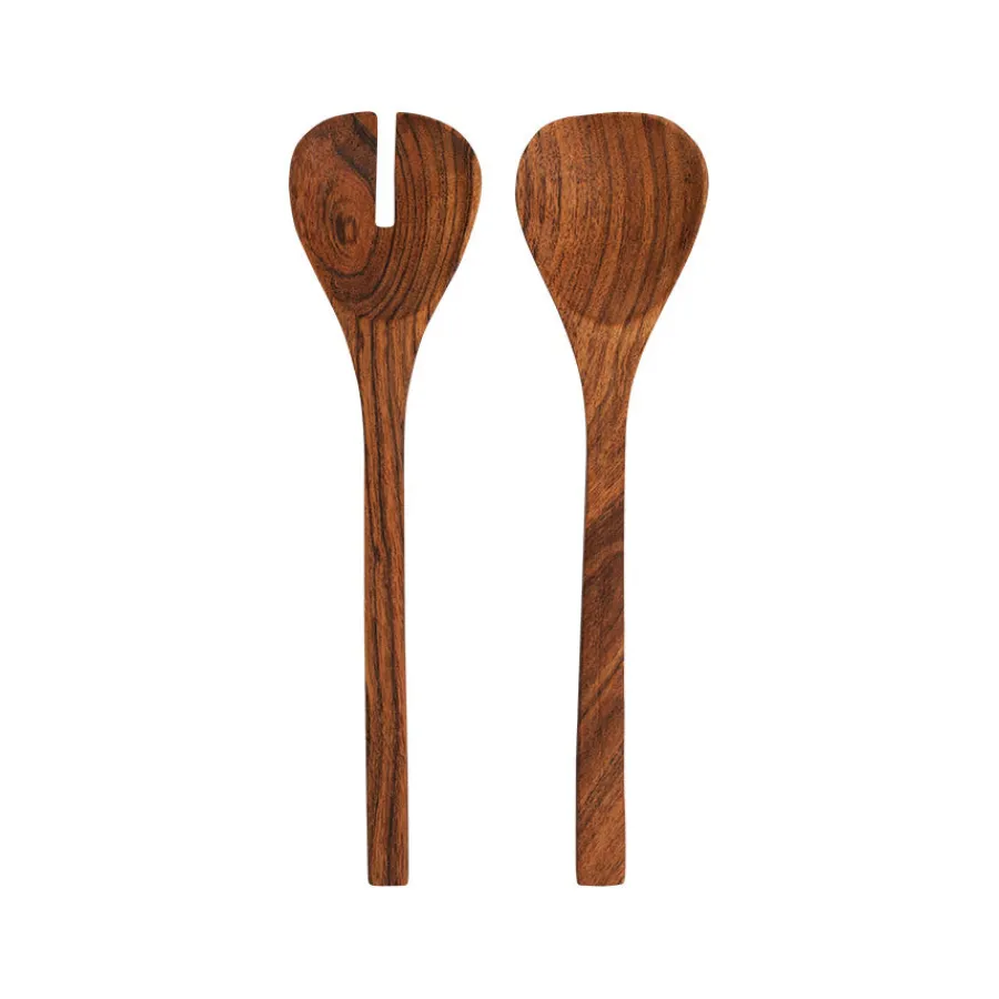 Gjør serveringen stilfull med dette vakre salatbestikket i ekte acacia-tre. Bestikket er ergonomisk utformet for et komfortabelt grep og gjør det enkelt å servere salater, pastaretter og grønnsaker. Treverkets naturlige varme gir en harmonisk følelse til borddekkingen, og det passer like godt til hverdags som til fest.Acacia-tre er kjent for sin holdbarhet, og dette bestikket tåler daglig bruk uten å miste sin kvalitet. Treverket er skånsomt mot skåler og boller, noe som betyr at du slipper riper på dine fine serveringsfat.For å bevare den naturlige glansen bør bestikket vaskes for hånd og smøres med litt matolje ved behov. Dette sikrer at det holder seg pent i mange år fremover.