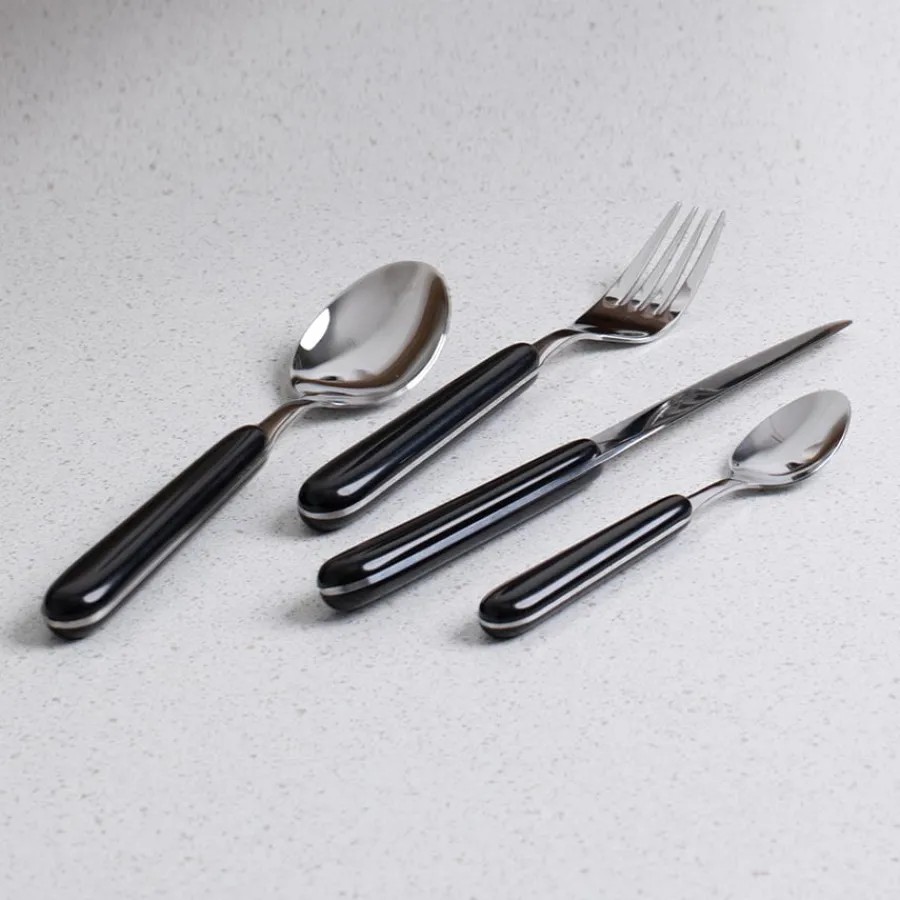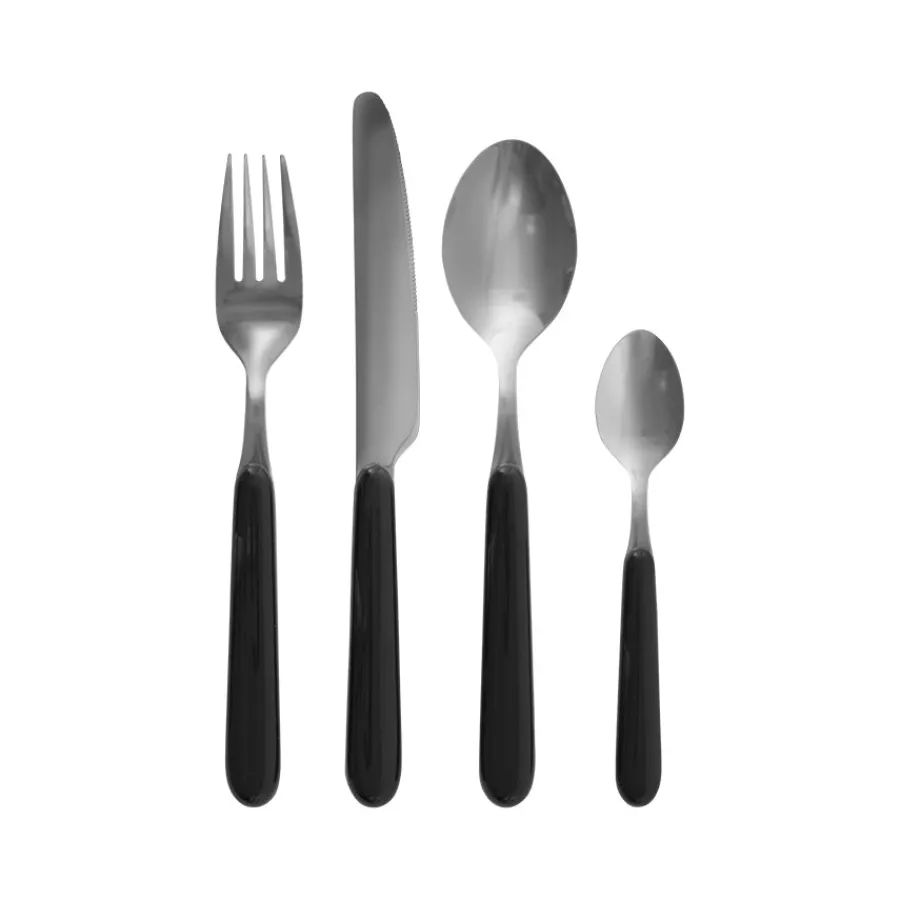 Bari Bestikksett i 16 deler fra Christiania 1739. Det tidløse og klassiske designet passer perfekt til både festlige anledninger så vel som til hverdagsmåltidet og det sorte skaftet gir et preg av moderne estetikk. Bestikket er produsert i rustfritt stål og skaftet er av BPA-fri plast. Bestikksettet kan vaskes i oppvaskmaskin.