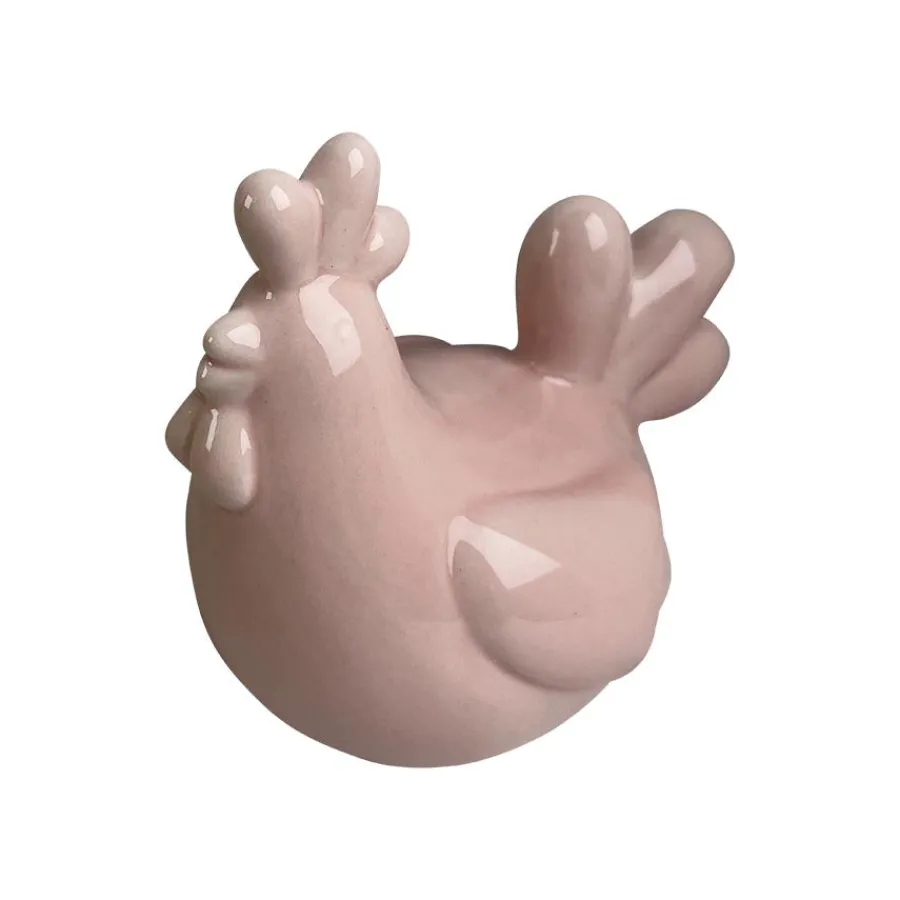 - Dekorativ keramikkhøne med glansfull, rosa finish