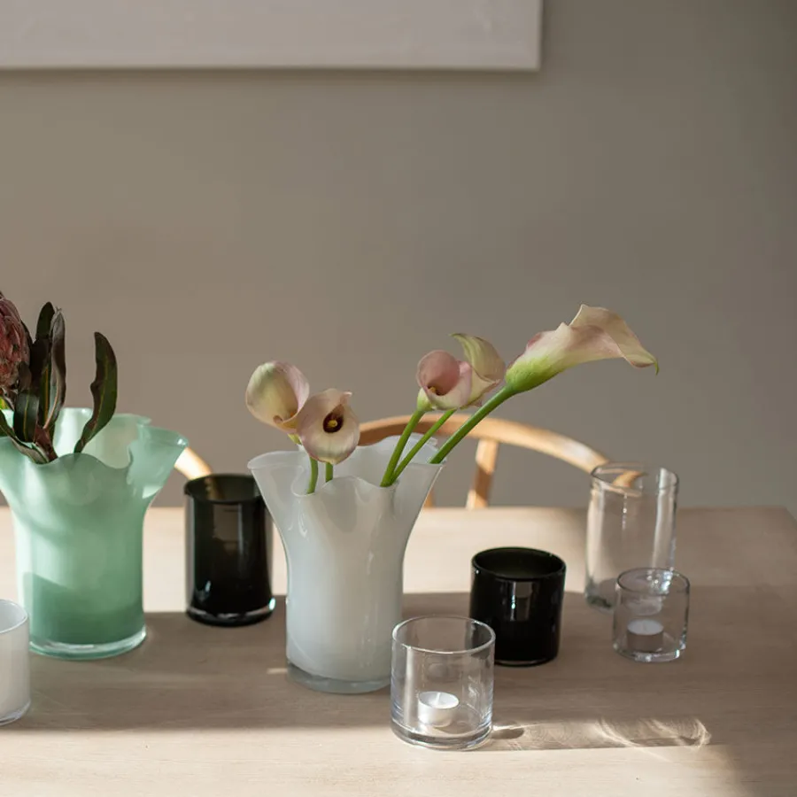 Lyslykt i klart glass fra Nova Edge. Den stilfulle lyslykten gir et subtilt, romantisk lys som passer perfekt på spisebordet eller på en skjenk. Lykten er 15 cm høy og finnes også i mindre størrelser.