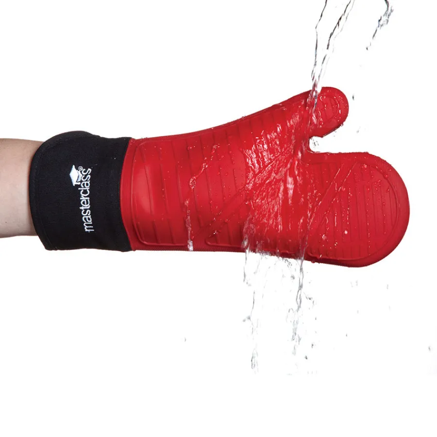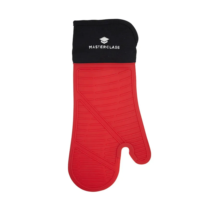 Grytevott i rød med sorte detaljer fra Kitchencraft. Grytevotten er fremstilt i varmebestandig silikon som gir et godt og sikkert grep når varme gryter og panner skal løftes. Votten er vannresistent og tåler varmen på opptil 250 grader.
