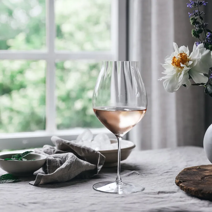 Kan vaskes i oppvaskmaskin, men burde vaskes separat så de ikke slår mot hverandre. Tørk glasset rett etter vask for å unngå striper og flekker.