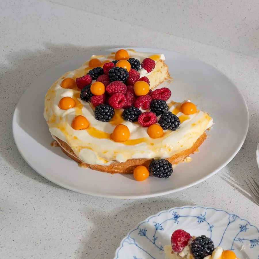 Rundt kakefat på 34 cm fra serien Bake It Easy. Bake It Easy fra Porsgrunds Porselænsfabrik er en funksjonell og praktisk serie som forenkler bakingen. Det stilrene fatet er fremstilt i feltspatporselen, og kommer i rene former som tar seg godt ut i ethvert hjem. Kan rengjøres i oppvaskmaskin.