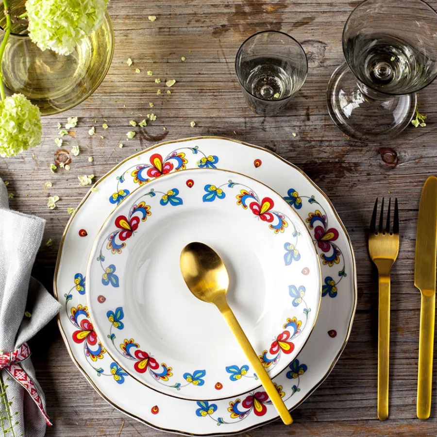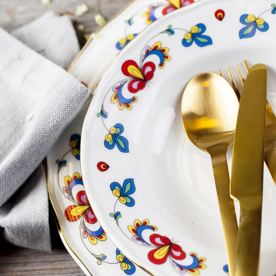 Tåler ikke stekeovn og mikrobølgeovn. Det anbefales håndvask for bevaring av dekoren.