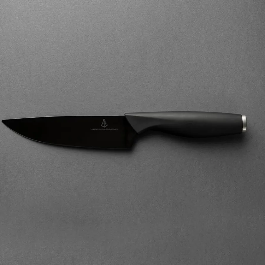Kokkekniv i sort fra De Cuisson. Kokkekniven er en del av Porsgrunds Porselænsfabriks serie med porselenskniver. Knivens blad av porselen sikrer en skarphet som holder seg lenge, og som også holder frukt og grønt lenger friskt, da oksideringsprosessen starter fortere ved bruk av stålkniver. Kniven er godt egnet til grønnsaker, fisk og kjøtt uten ben. Les mer om bruksområder under tilleggsinformasjon.