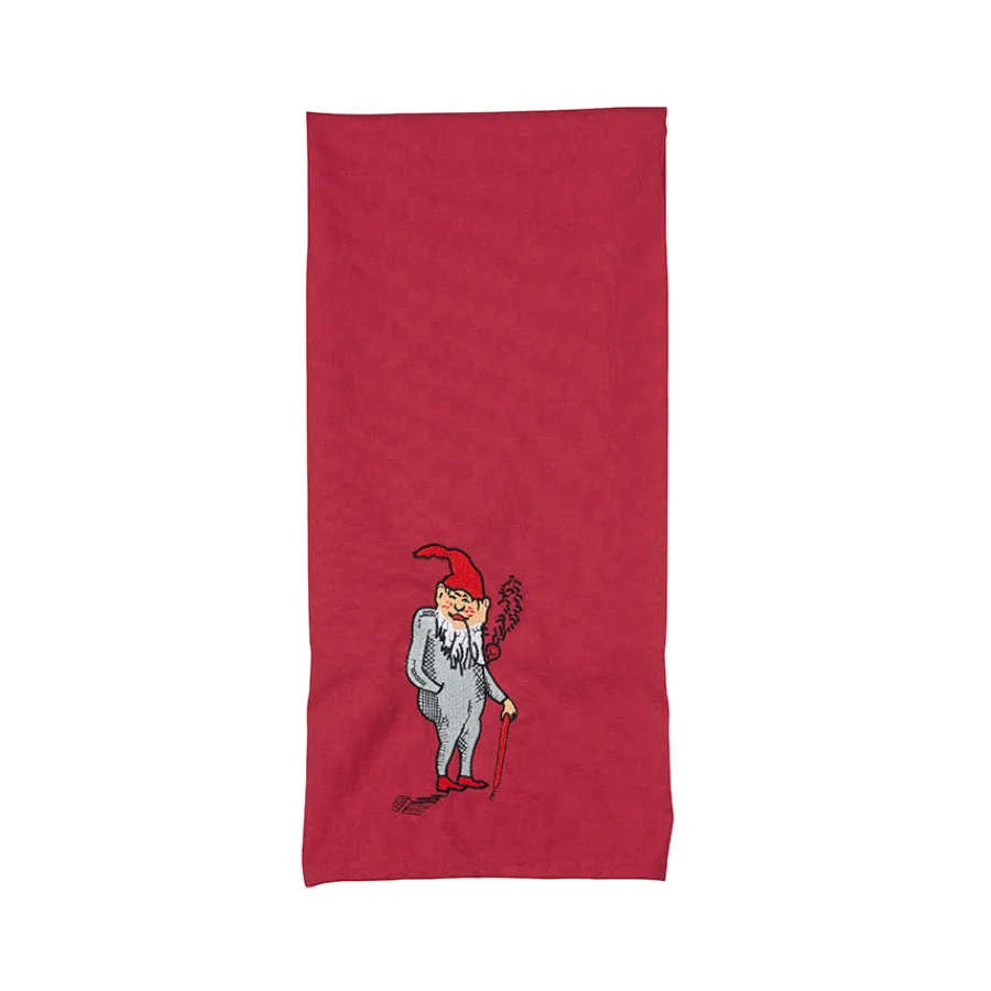 Kjøkkenhåndkle med nissedekor fra Porsgrunds Porselænsfabrik. Kombinasjonen av den røde fargen og det stemningsfulle julemotivet gjør tekstilen flott hengende på kjøkkenet når den ikke er i bruk. Motivet er hentet fra det tradisjonsrike Nisseserviset fra Porsgrunds Porselænsfabrik, som består av skøyeraktige fjøsnisser som fabrikkeierens datter tegnet helt tilbake i 1898.