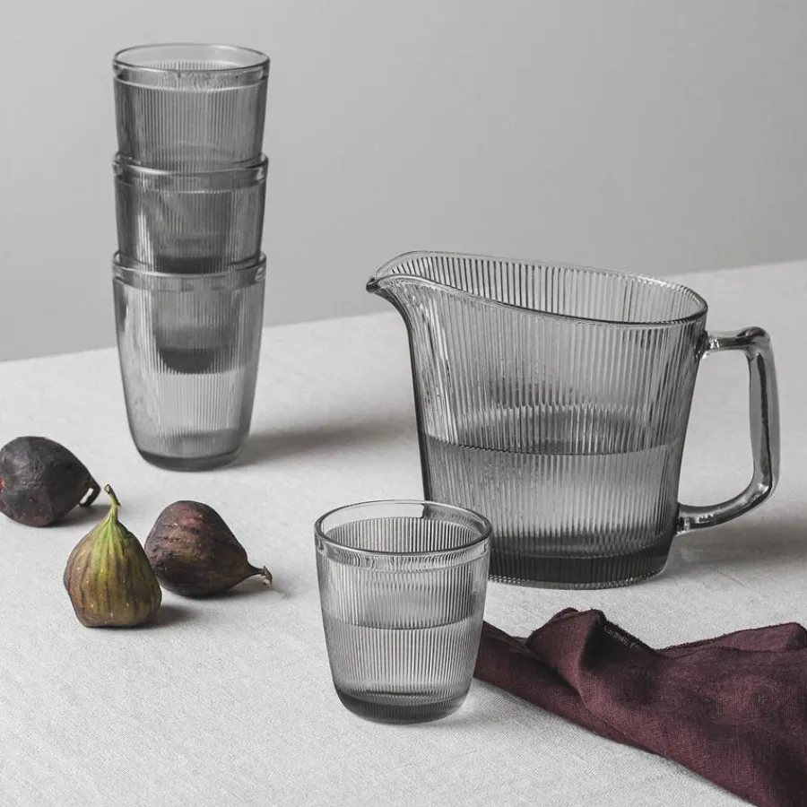 Vannmugge på 1 liter fra Hadeland glassverk sin serie Siri. Muggen er i farget røkgrå glass og kan brukes sammen med resten av delene fra serien, som vannglass og asjetter, eller brukes alene sammen med et annet pent servise. Muggen kan også brukes som en blomstervase med frisk vakre sommerblomster.