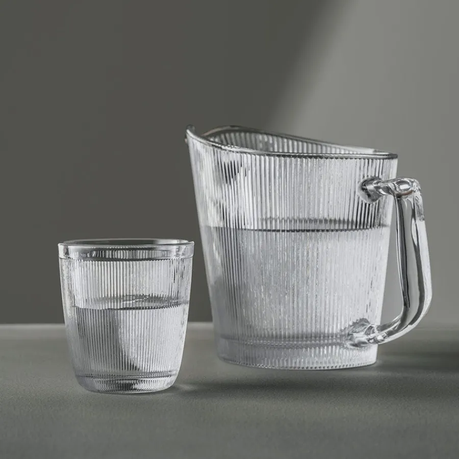 Vannmugge på 1 liter fra Hadeland Glassverks serie Siri med dekorative riller i glasset. Siri er en nydelig serie som med sitt delikate uttrykk er et stilig element på et dekket bord eller i hjemmet. Muggen brukes enkelt sammen med resten av serien og spesielt drikkeglassene og asjettene. Muggen kan rengjøres i oppvaskmaskin.
